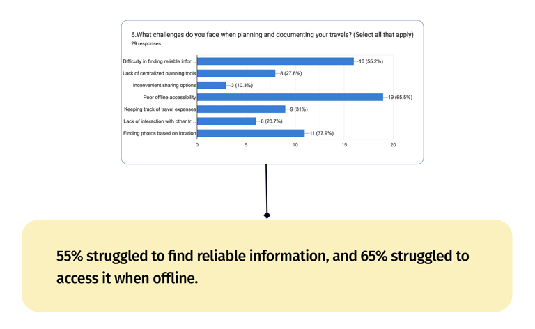 In our survey results, we found that users struggle to keep track of their expenses while traveling.